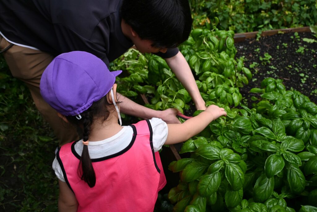 さらに、SDGs農園は、近隣の保育園児による栽培体験の場としても活用されています。きたみてガーデンの学生らがサポートし、園児たちは野菜の苗植えや収穫を体験しました。その後、保育園では収穫した野菜を使って「ピザ」や「シソジュース」を作り、地域の子どもたちの食育の機会にもつながりました。