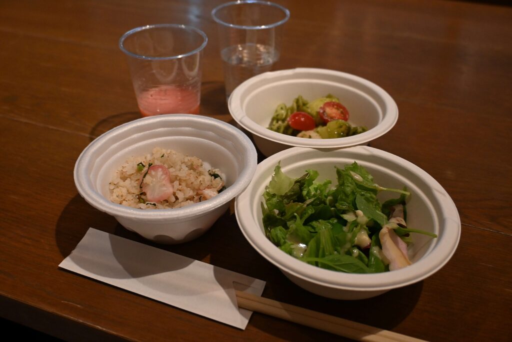 SDGs農園で収穫された野菜は、北海道マラソン2025前日の8月30日(土)にランナー向けに企画されたカーボローディングパーティーにて提供されました。メニューには、「北大二十日大根とじゃこの混ぜご飯」「北大ミントウォーター」「海老と北あかりのジェノベーゼパスタ」など、農園の恵みを活かした料理が並びました。また、北大ブランドの「北大ラズベリー」や「北海道大学純米酒『奥智』」の酒粕を使用した「北大ラズベリーの甘酒」「北大酒粕ドレッシング」もふるまわれ、大学の研究成果と地域資源が融合した食の魅力を発信しました。これらの食材は、総合博物館内の「ミュージアムカフェぽらす」でも提供され、来館者にもSDGs農園の取り組みを身近に感じていただく機会となりました。