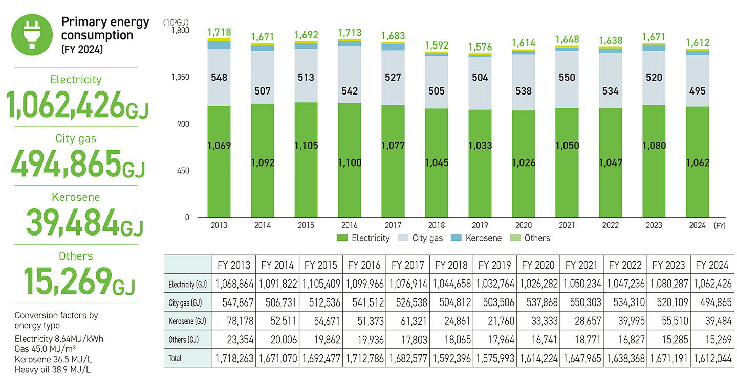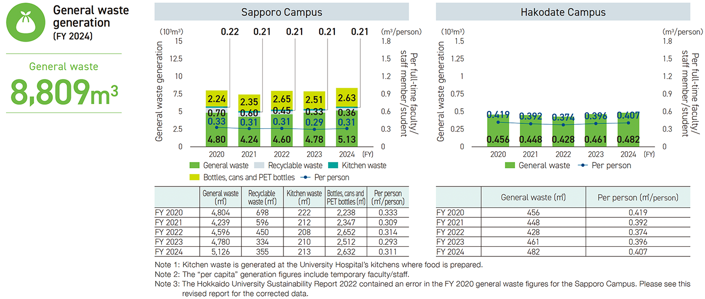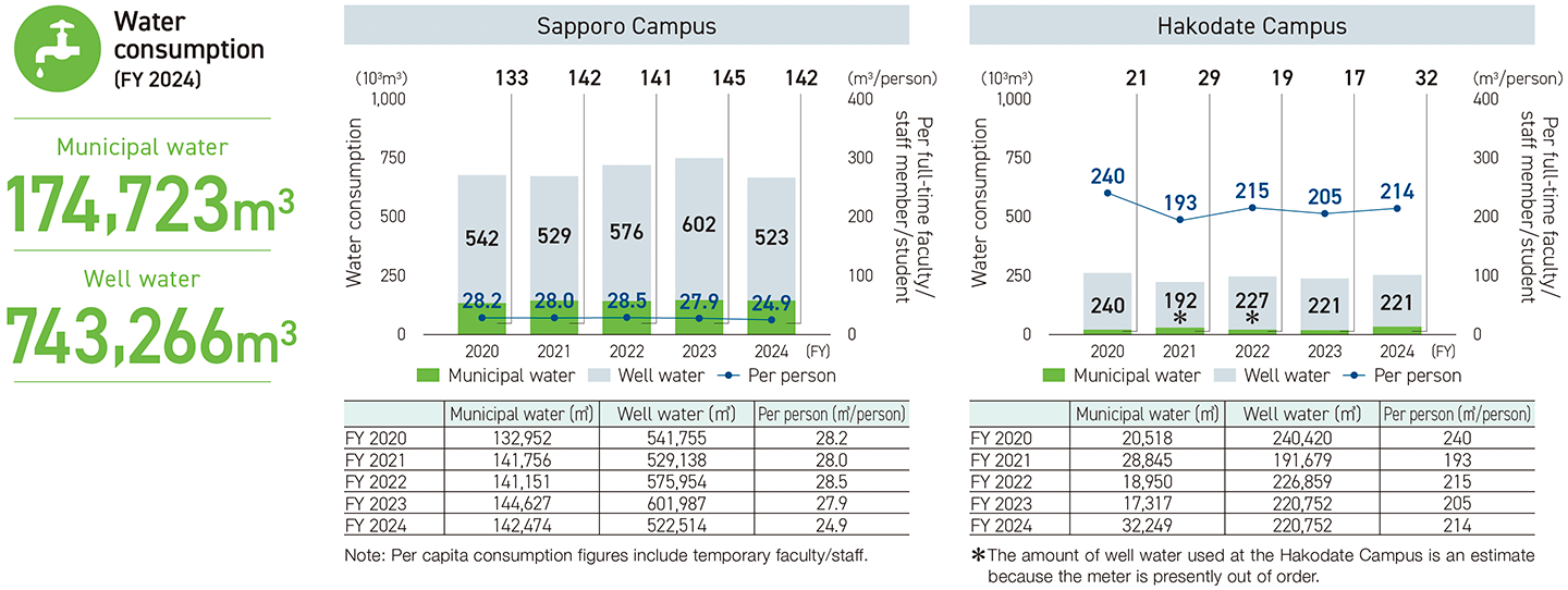 Changes in Environmental Data at Hokkaido University. These data are taken from the Sustainability Report.